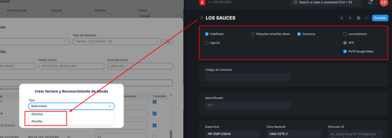 Cuando seleccionamos tipo planilla solo podremos escoger por empleado de la sucursal donde se esta haciendo la supervisión, se genera una comprobante y su reconocimiento de deuda.