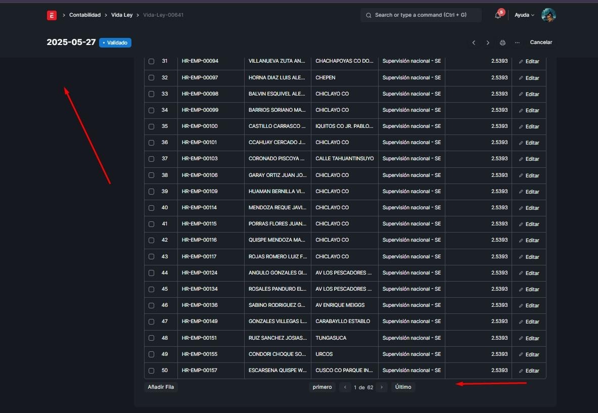 Ruta: ERP > RRHH > Seguros > Vida Ley