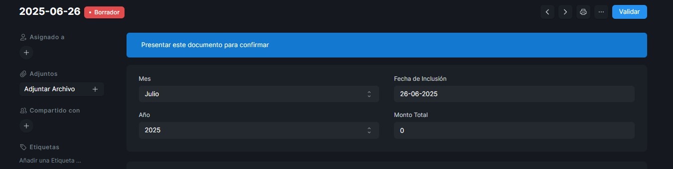 Los documentos son generados de manera automática todos los días que se ingrese el personal . En estado borrador: