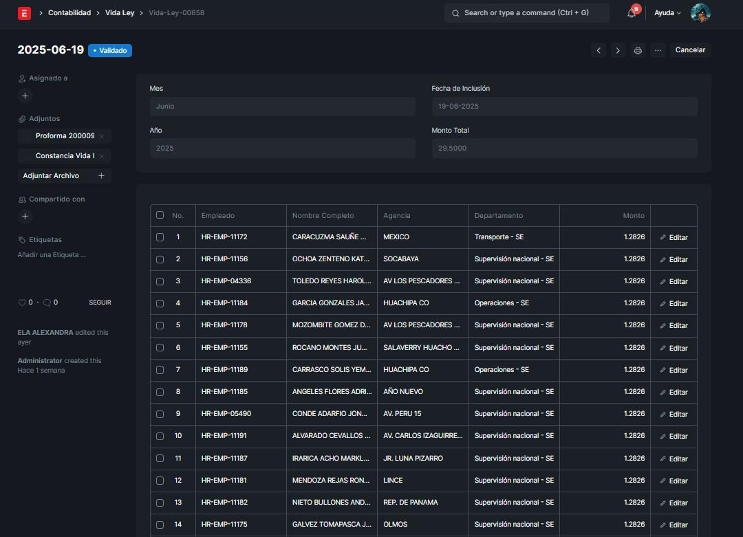 El módulo de Vida Ley en el ERP garantiza que la empresa cumpla con las obligaciones legales respecto al seguro de vida de sus trabajadores, brindando trazabilidad, seguridad documental y automatización del proceso desde la afiliación hasta el pago.