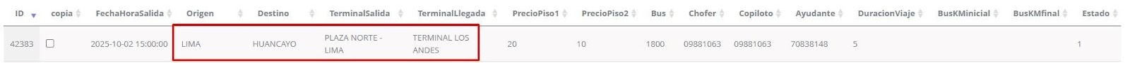 FechaHoraSalida : Fecha y hora de la salida del bus programada.