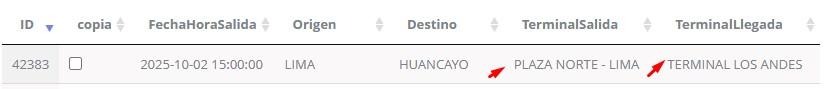 En Terminal Llegada se selecciona el terminal de llegada.