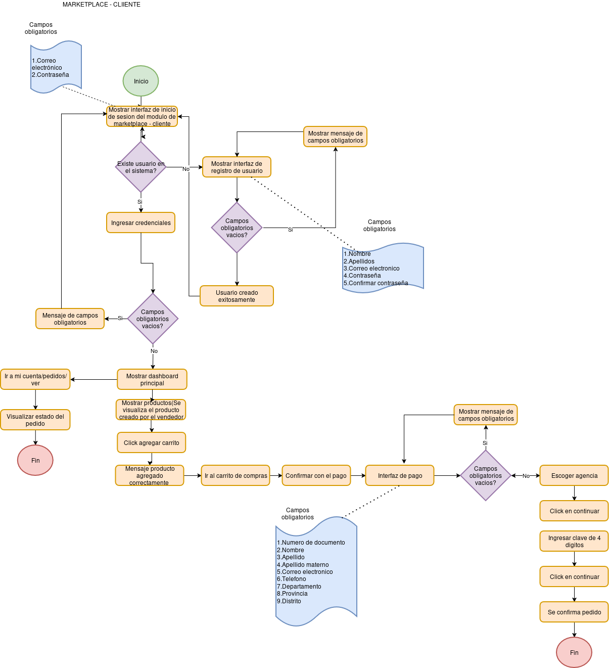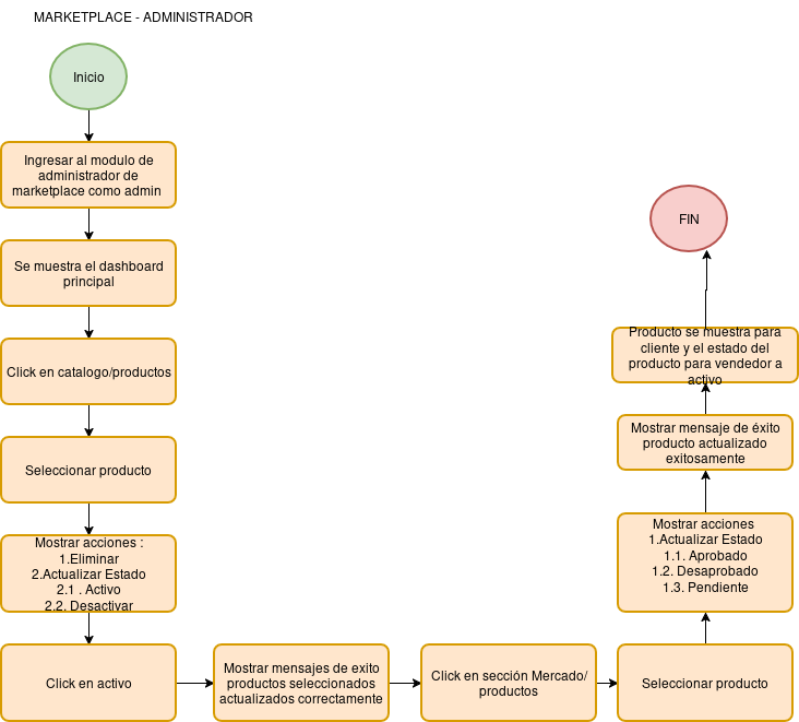 Definir las reglas, procesos y responsabilidades para la gestión de productos y ventas en la plataforma Marketplace, asegurado un flujo estandarizado para los roles de Administrador, Vendedor y Cliente, desde el inicio del registro del producto hasta la compra y aprobación final.