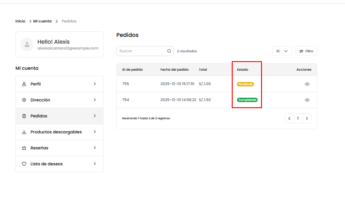Vista vendedor ordenes también figuran con sus estados correspondientes