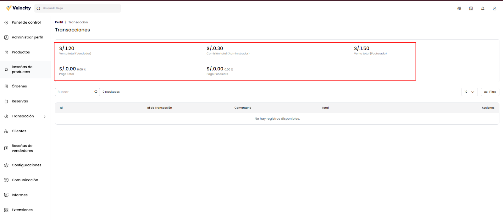 Y vemos que la venta que se realizó desde el apartado del vendedor se visualiza la venta y comisión