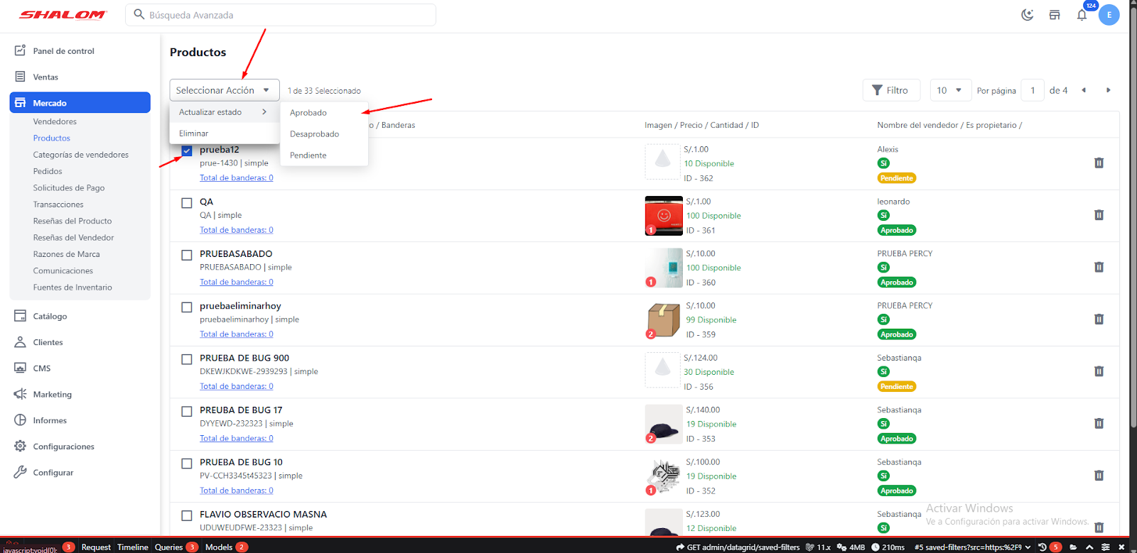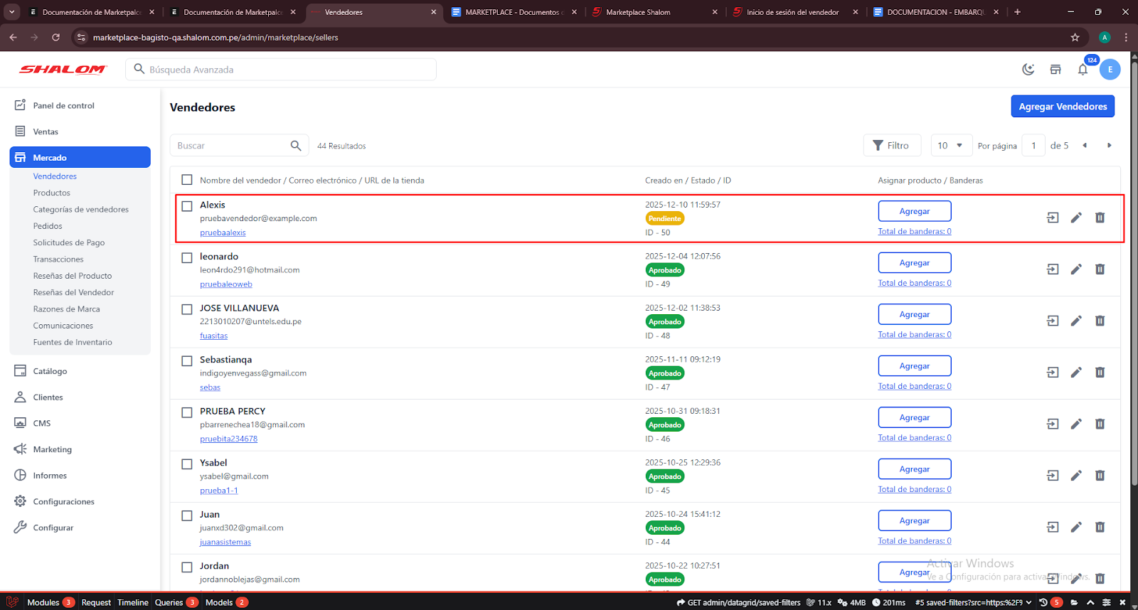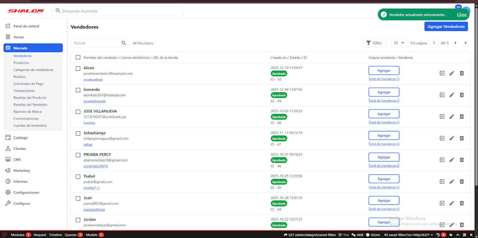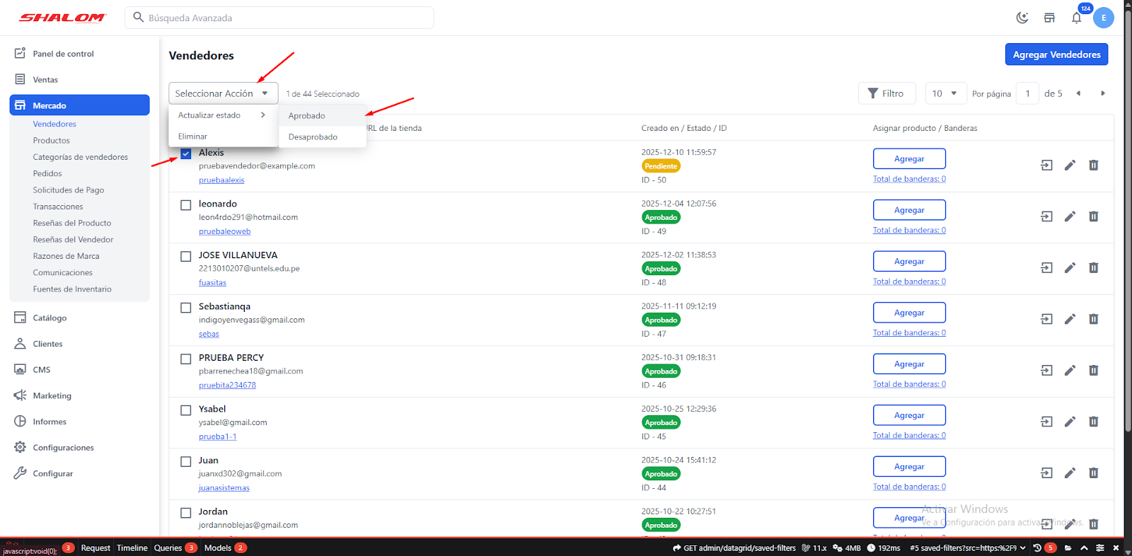 Nos vamos al apartado de administrador para aprobar al vendedor creado ingresamos
