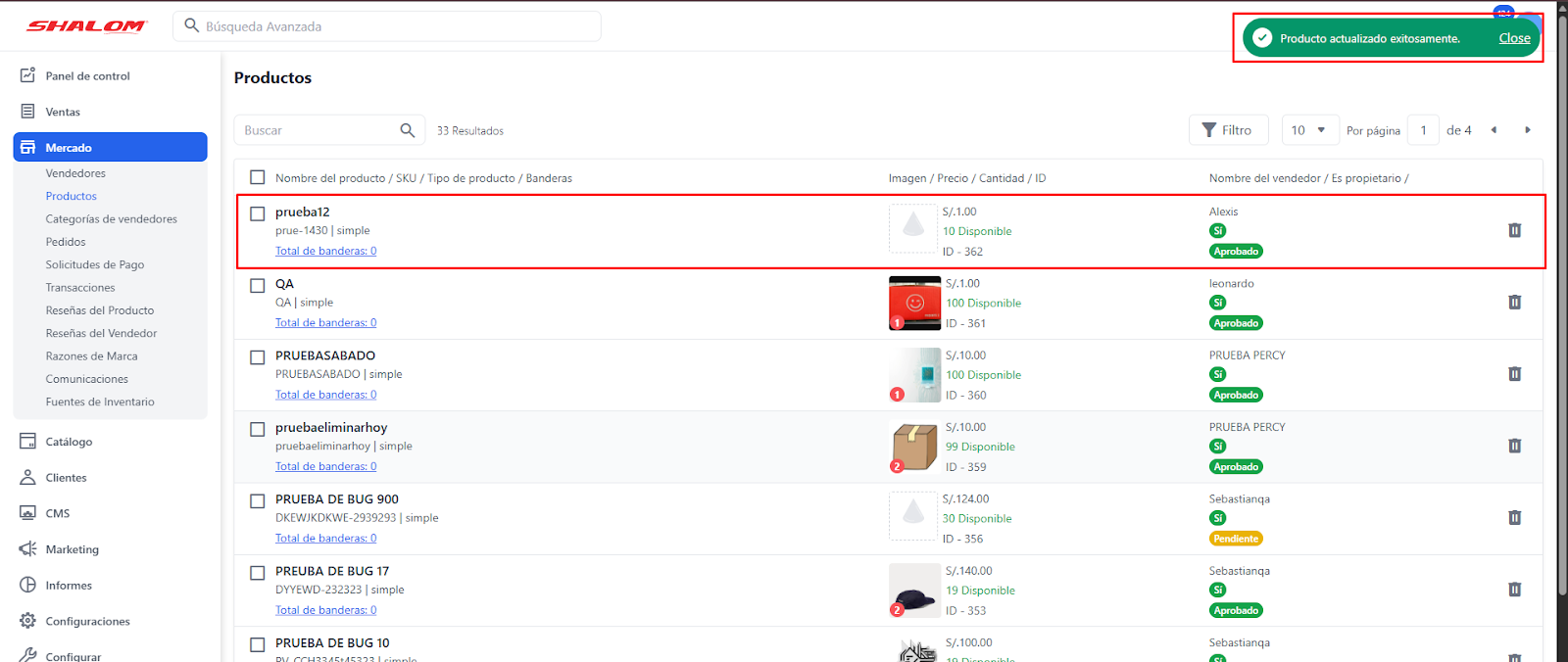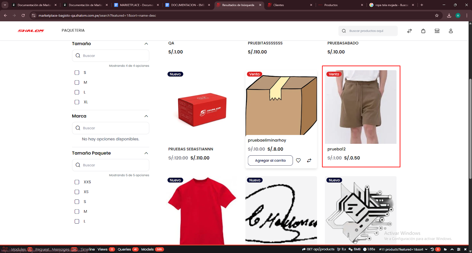Link de búsqueda para el cliente: https://marketplace-bagisto-qa.shalom.com.pe/