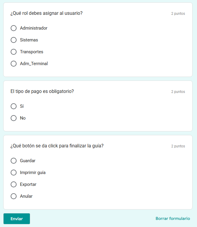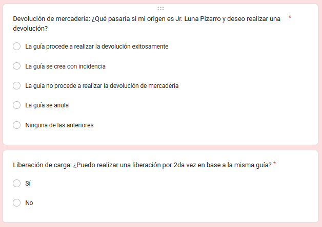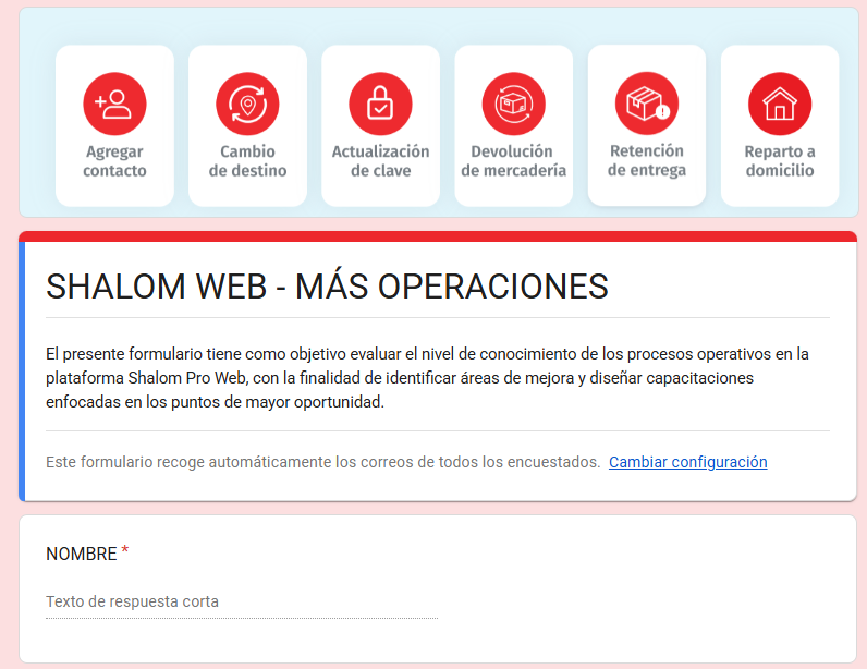 El presente formulario tiene como objetivo evaluar el nivel de conocimiento de los procesos operacionales en la plataforma Shalom Pro Web, con la finalidad de: