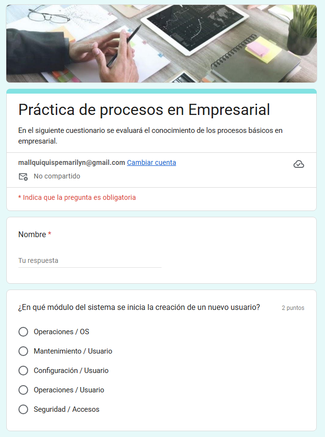 CUESTIONARIO DE PRUEBAS BÁSICAS EN EMPRESARIAL