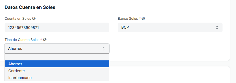 Es obligatorio llenar tanto el Banco como el Tipo de Cuenta.