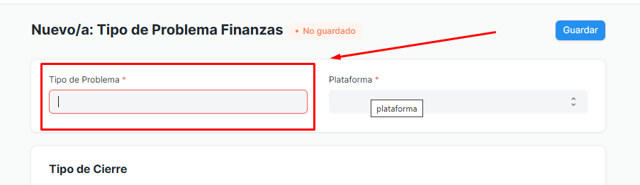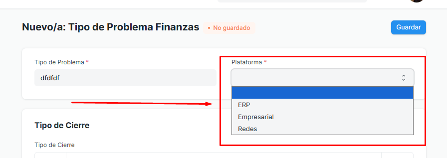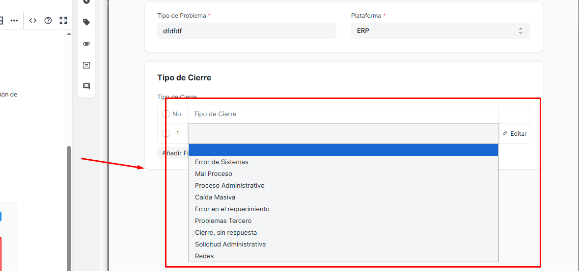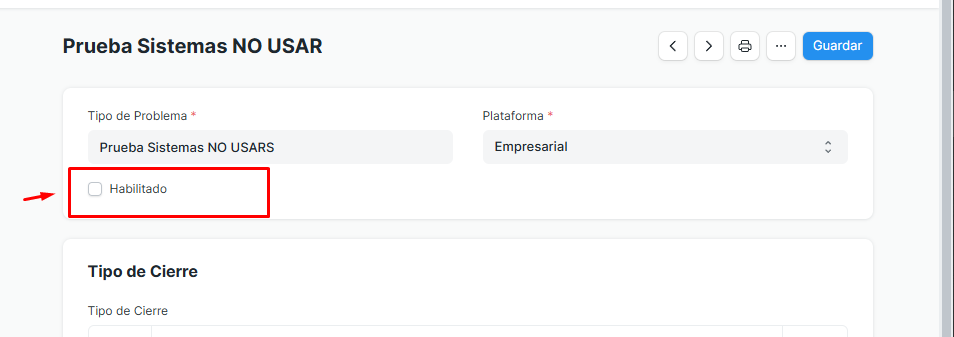 Asignación de Cierres: Definir en la tabla de Tipo de Cierre cuáles son las resoluciones válidas para este problema.