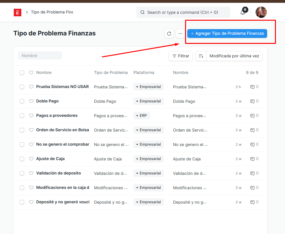 Definición de Incidencia: Escribir en el campo Tipo de Problema el nombre claro del error (ej. "Fallo en sincronización de caja").