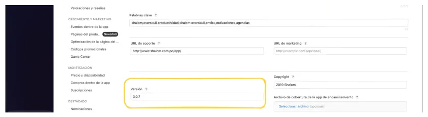 - Version → debe coincidir con la versión que se publicará en la App Store.