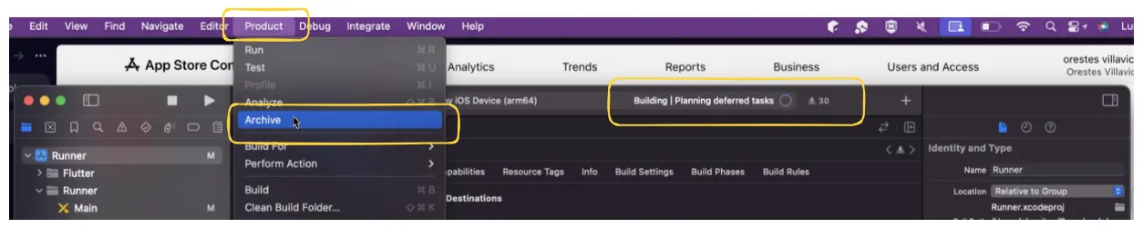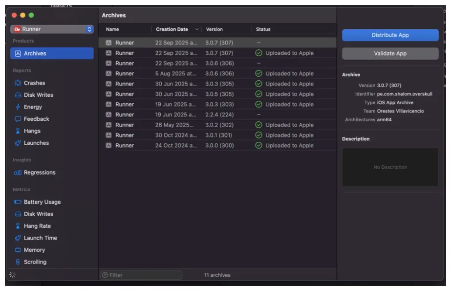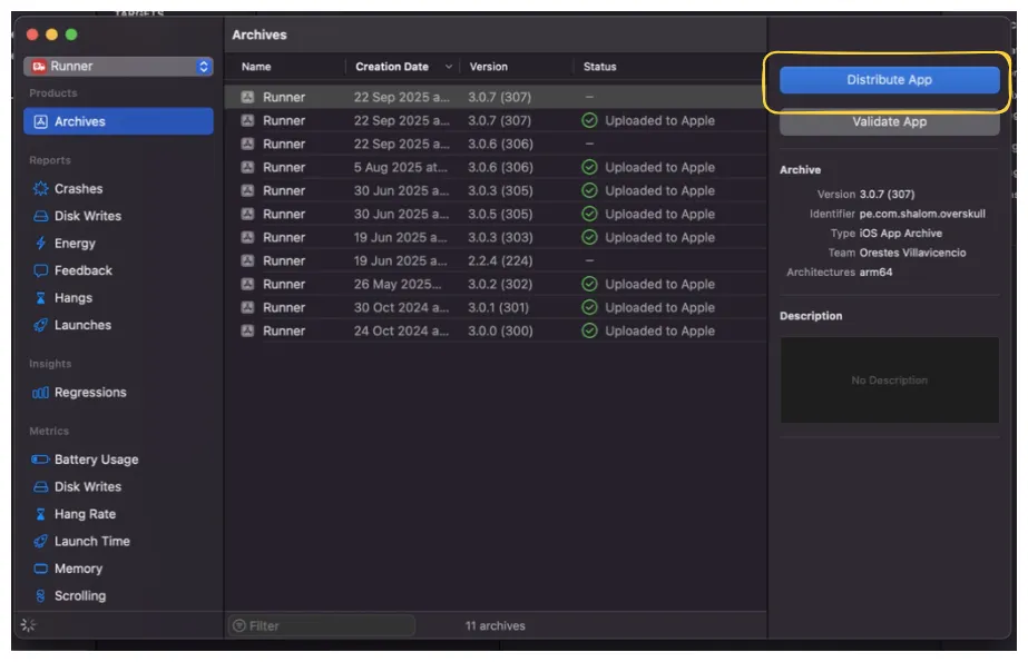 Xcode subirá la build a la cuenta de Apple Developer asociada.