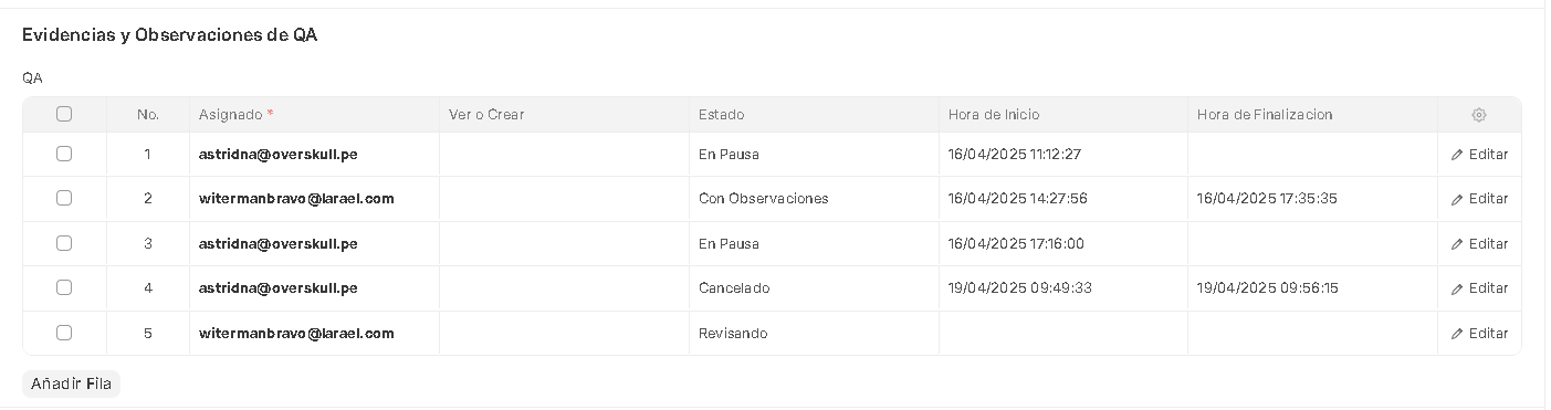 En caso de que un analista de calidad (QA) realice una observación sobre una tarea, la verificación de que dicha observación haya sido corregida deberá ser realizada por el mismo analista que la reportó, mediante una nueva revisión de calidad. (En caso no se pueda asignar lo solicitado se realizara mediante la regla explicada en el punto 3 )