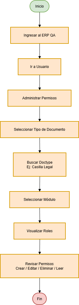 En ERP, los permisos se gestionan por Doctype (módulo) y por rol.