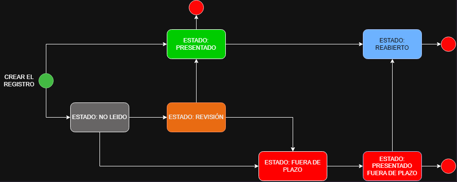 | No Leído | Al crear el registro desde casilla legal o el mismo apartado | - |