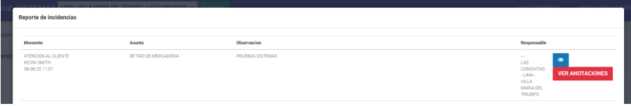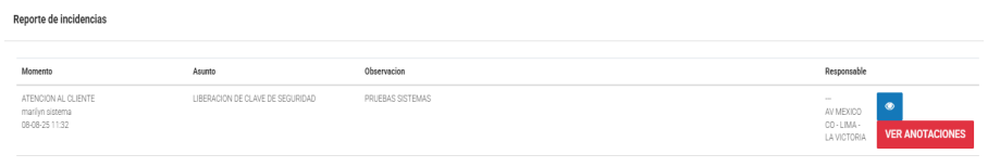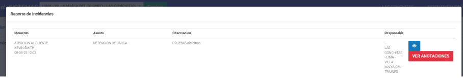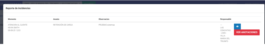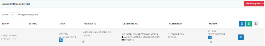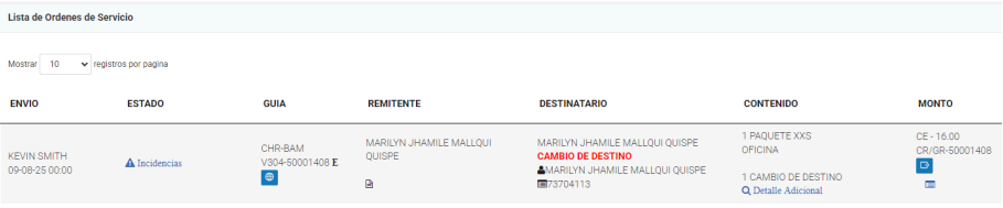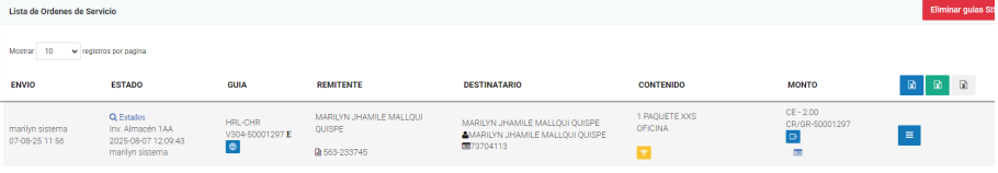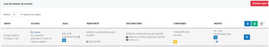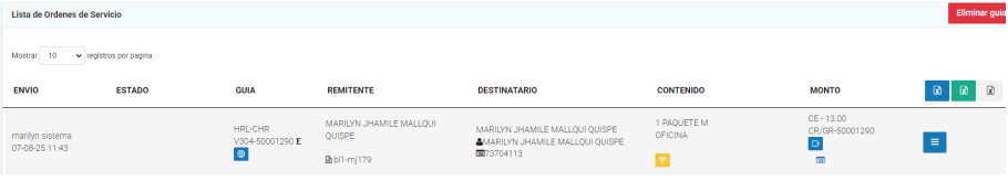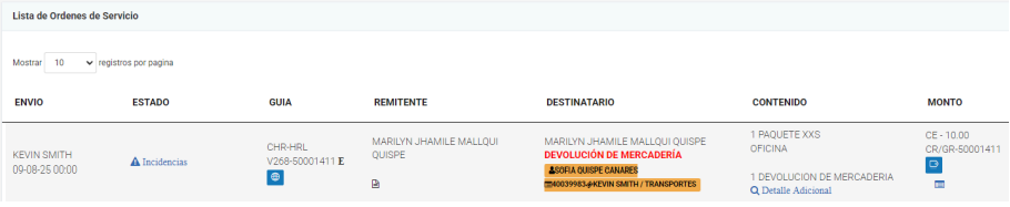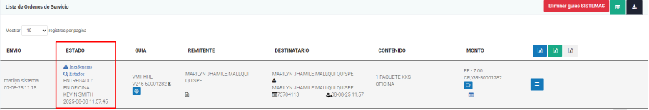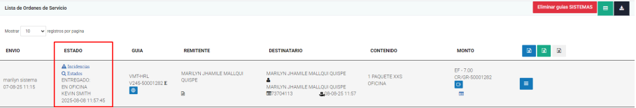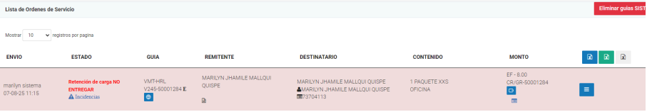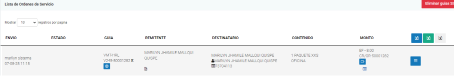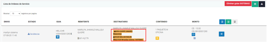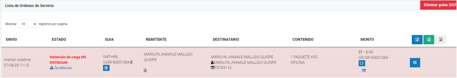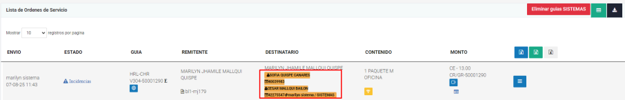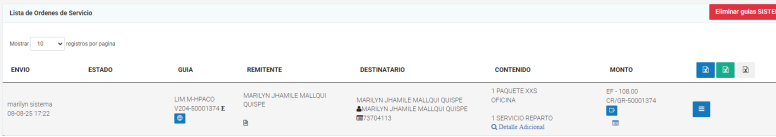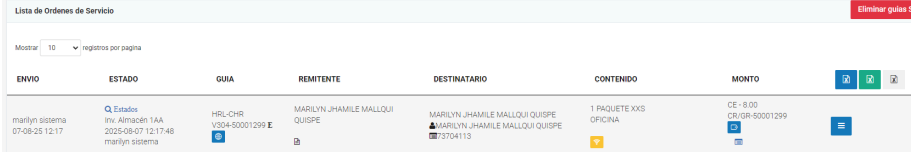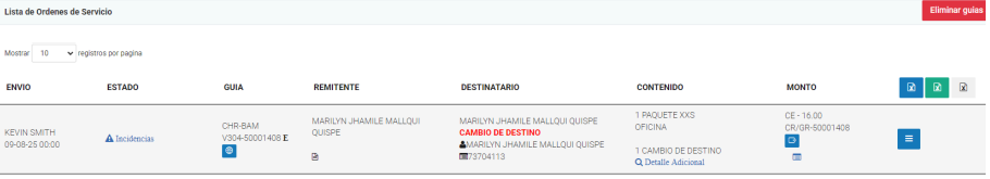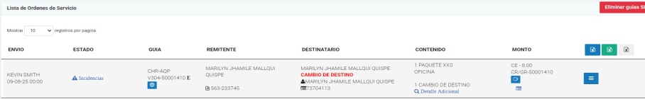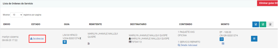 Ahora visualizamos la nueva guía con la incidencia creada.