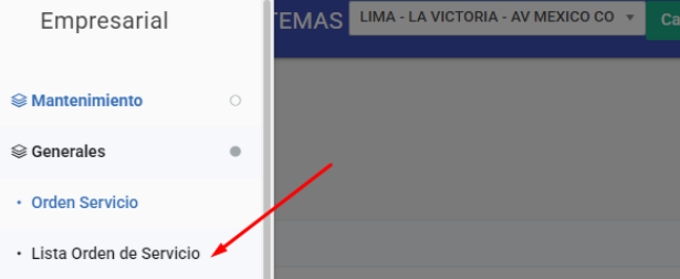 Primero, ingresamos al apartado Lista Orden de Servicio.