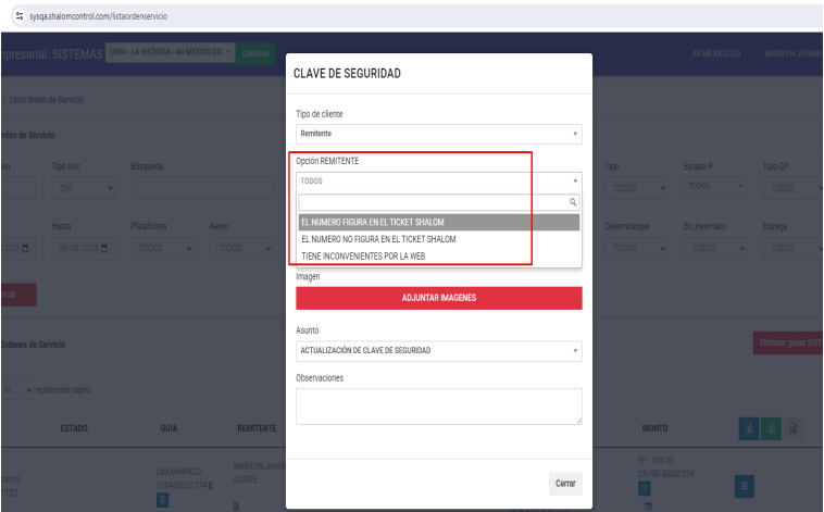 ● Módulo Lista orden de servicio: https://sysqa.shalomcontrol.com/listaordenservicio
