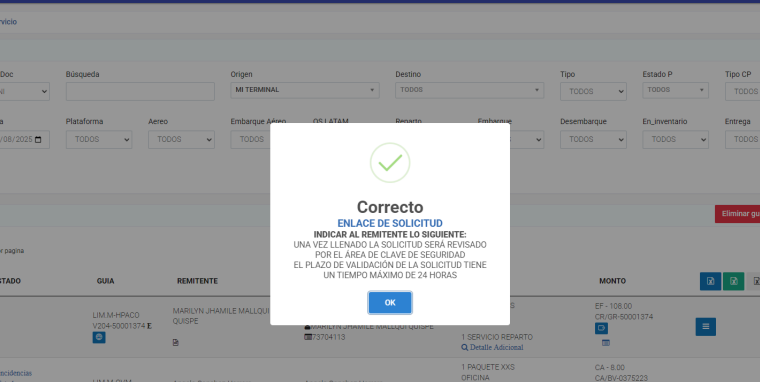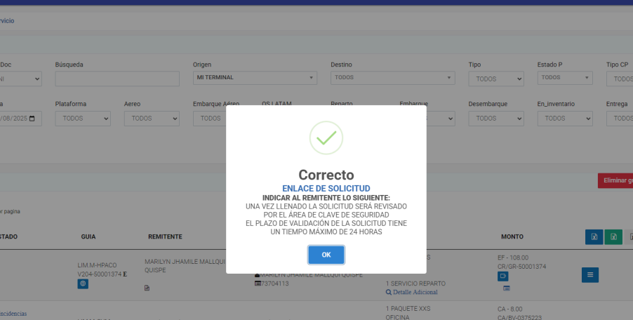 Nos saldrá el siguiente mensaje con la nueva guía.