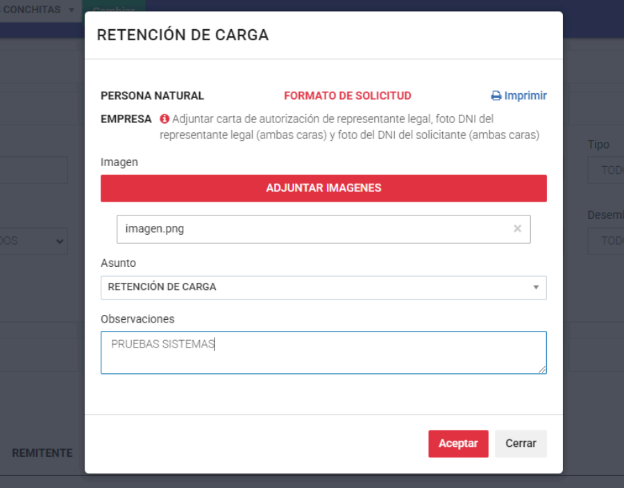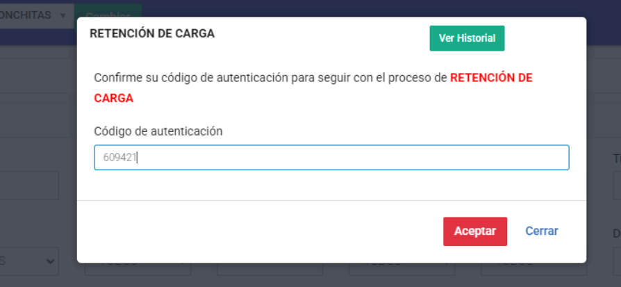 Se visualiza lo siguiente cuando se realiza un proceso de retención de carga.