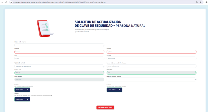 Al darle click a las letras azul, se abrirá el siguiente formulario para completar nuestros datos.