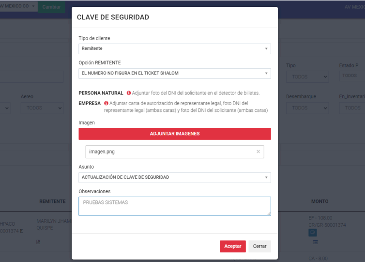 Se visualiza lo siguiente cuando se realiza un proceso de clave de seguridad.