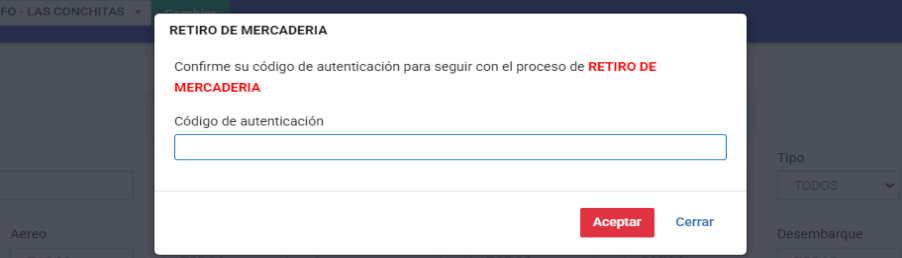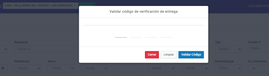 - Retiro de mercadería: Código de verificación de entrega y código de autenticación de inicio de sesión.