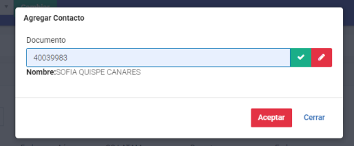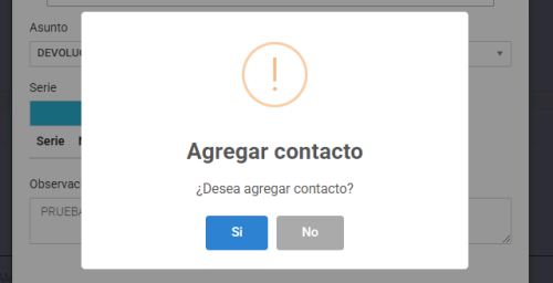 Se visualiza lo siguiente cuando se realiza un proceso de agregar contacto.