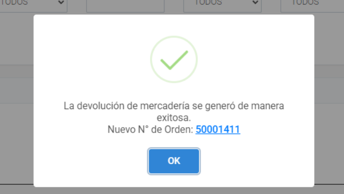 Se visualiza lo siguiente cuando se realiza un proceso de devolución de mercadería.