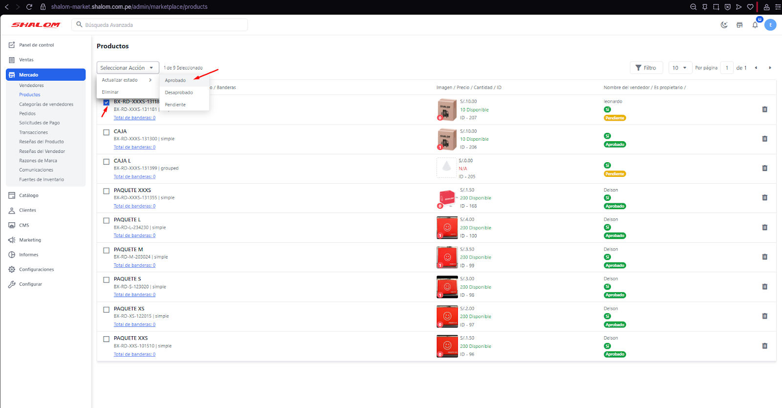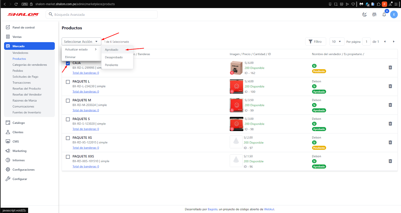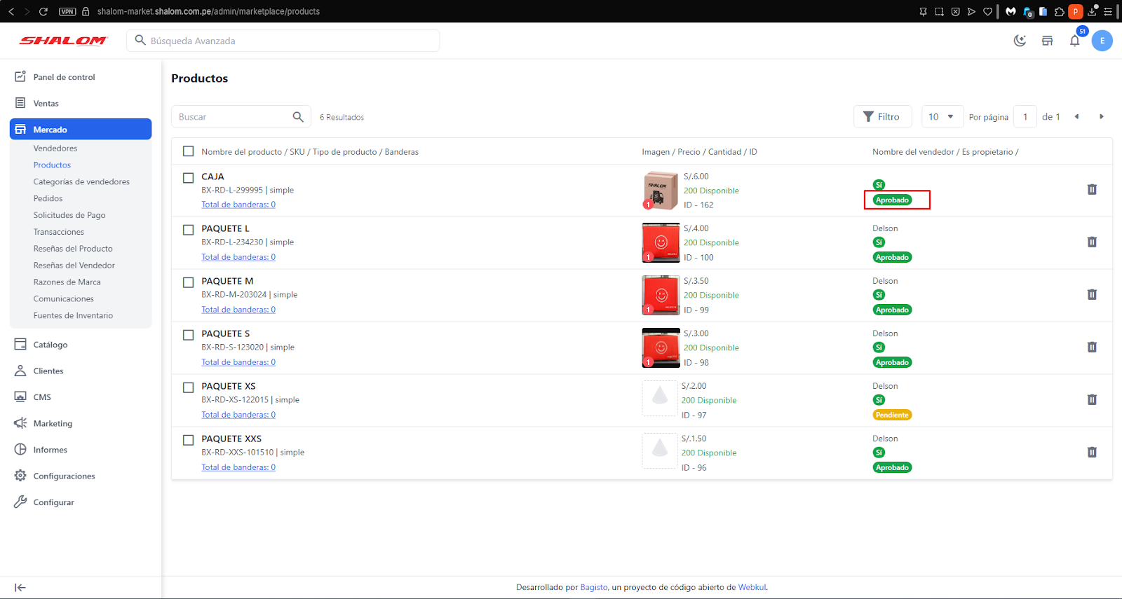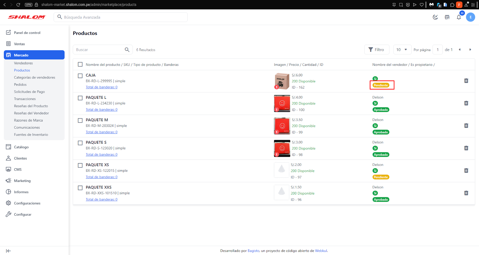 Vendedor: Gestiona su propio inventario. Puede crear y editar sus productos, sujeto a las políticas de aprobación del sistema.