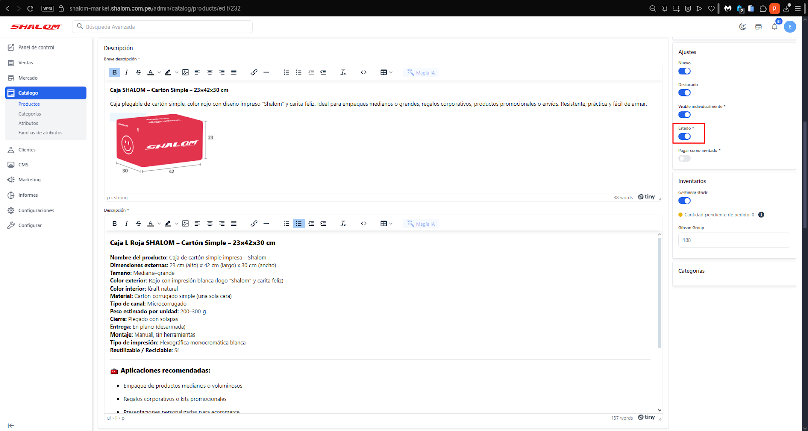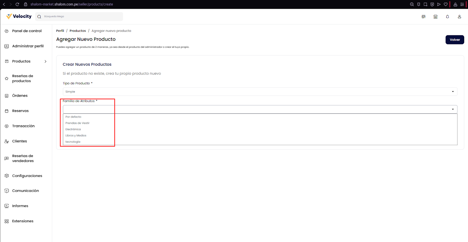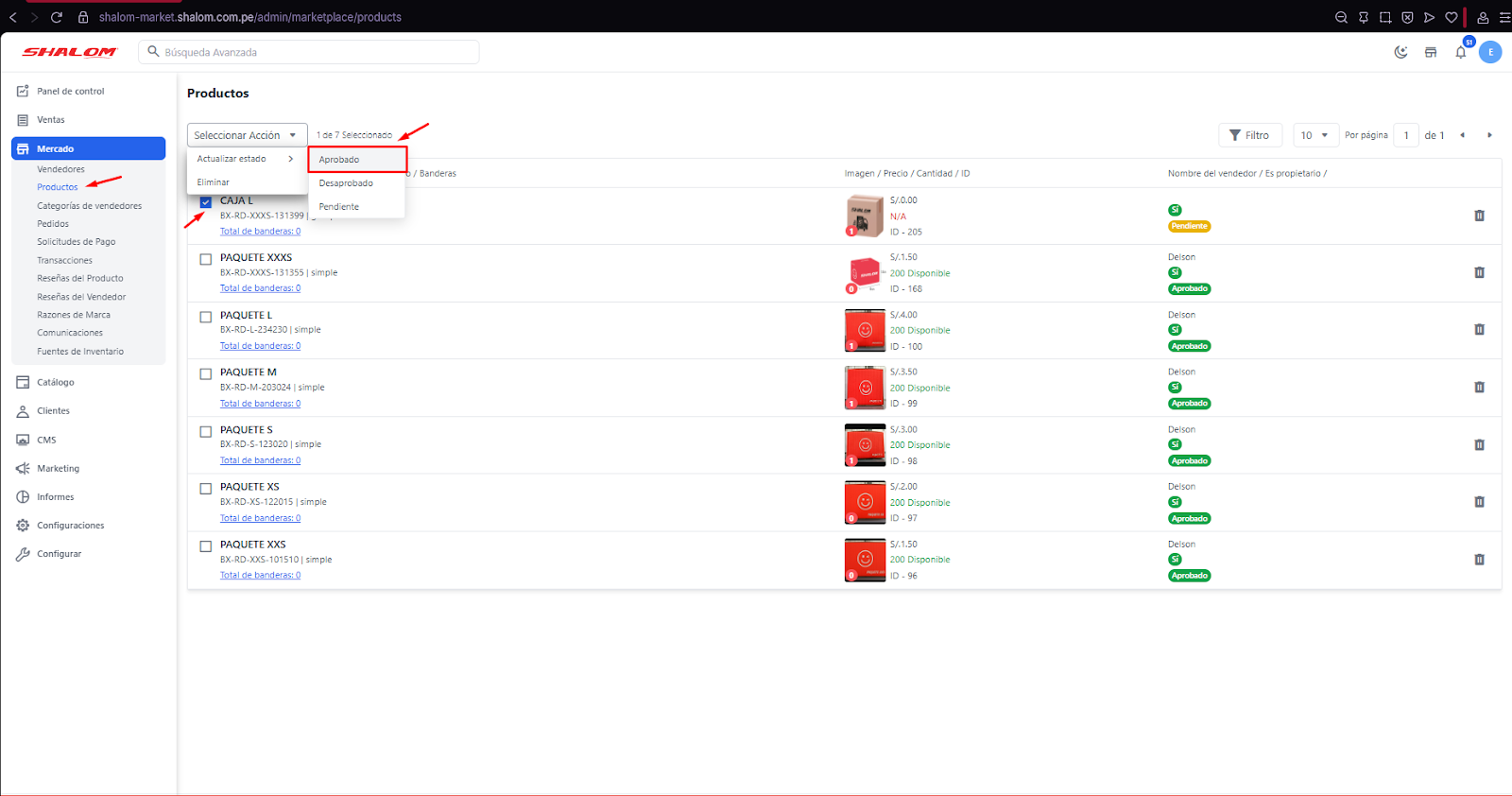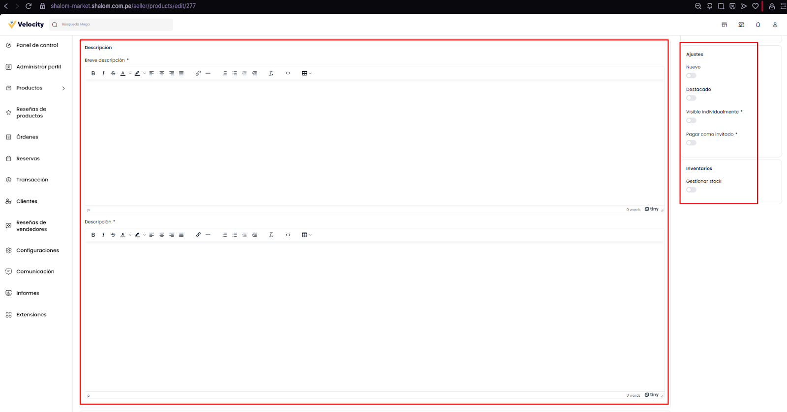 Vendedor: Gestiona su propio inventario. Puede crear y editar sus productos, sujeto a las políticas de aprobación del sistema.