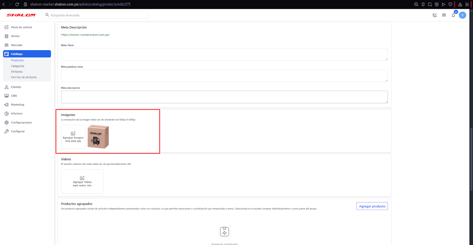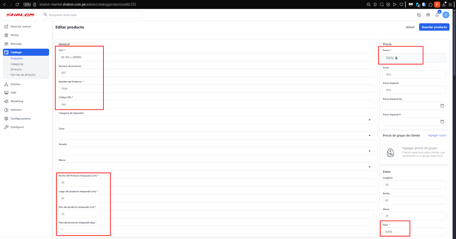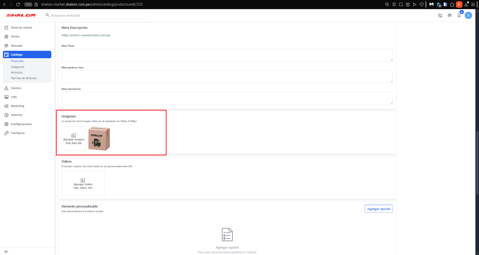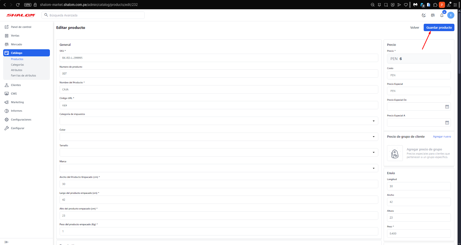 Se ingresa y se presiona en el menú el apartado de “Catálogo - Producto”
