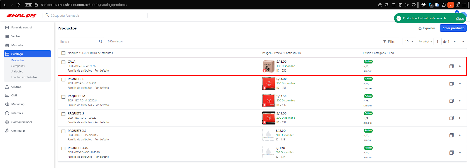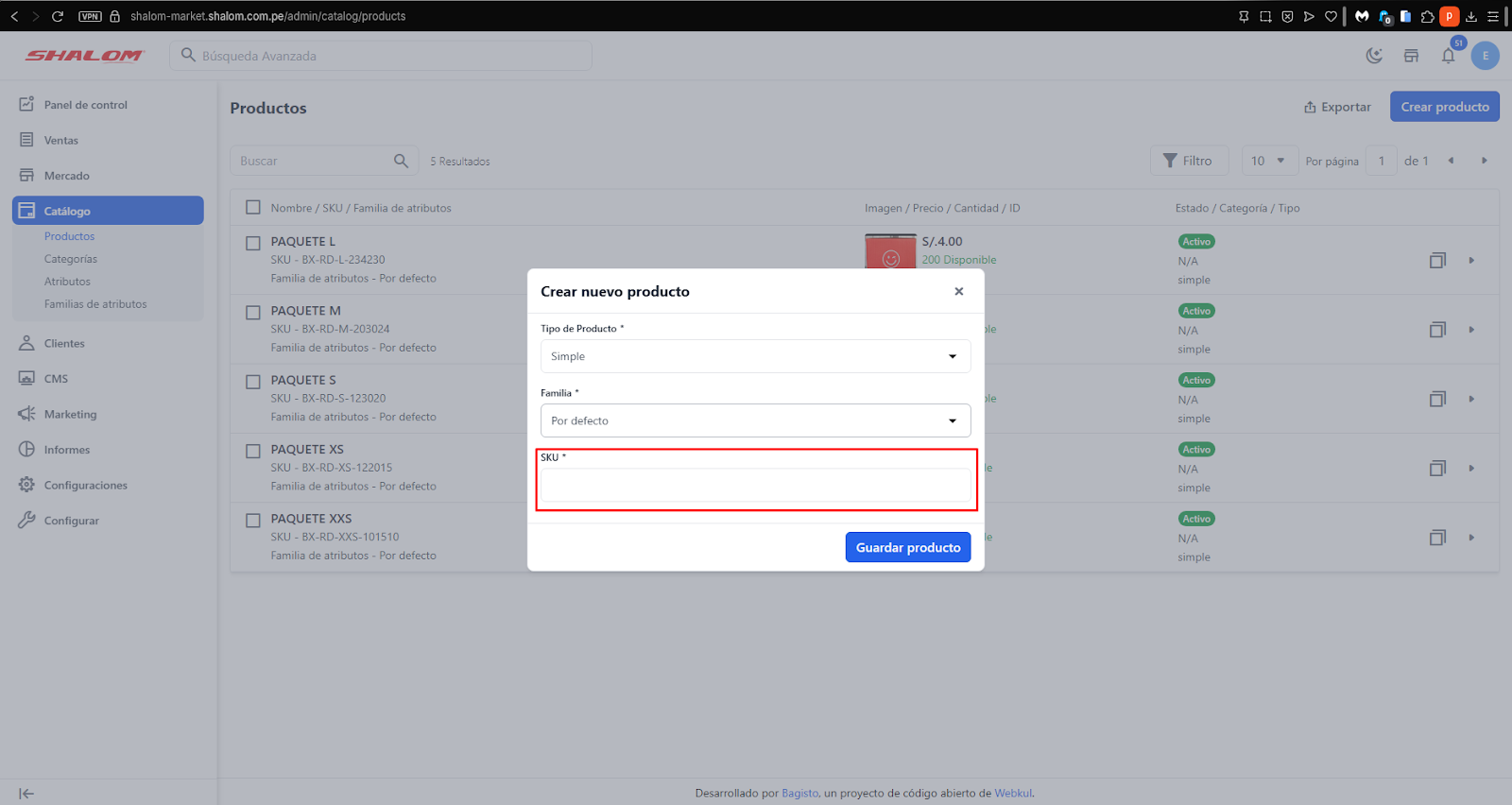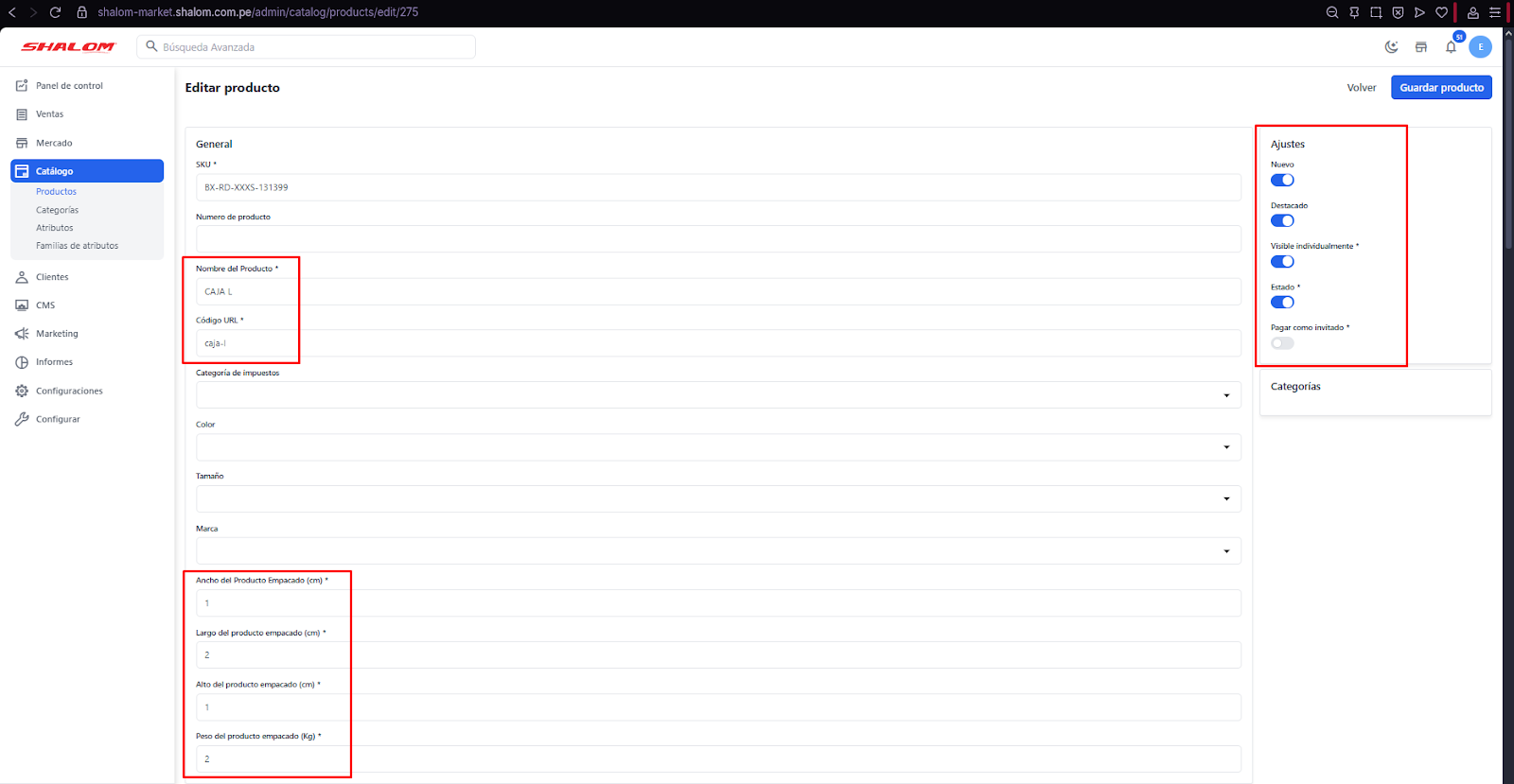 Se ingresa y se presiona en el menú el apartado de “Catálogo - Producto”