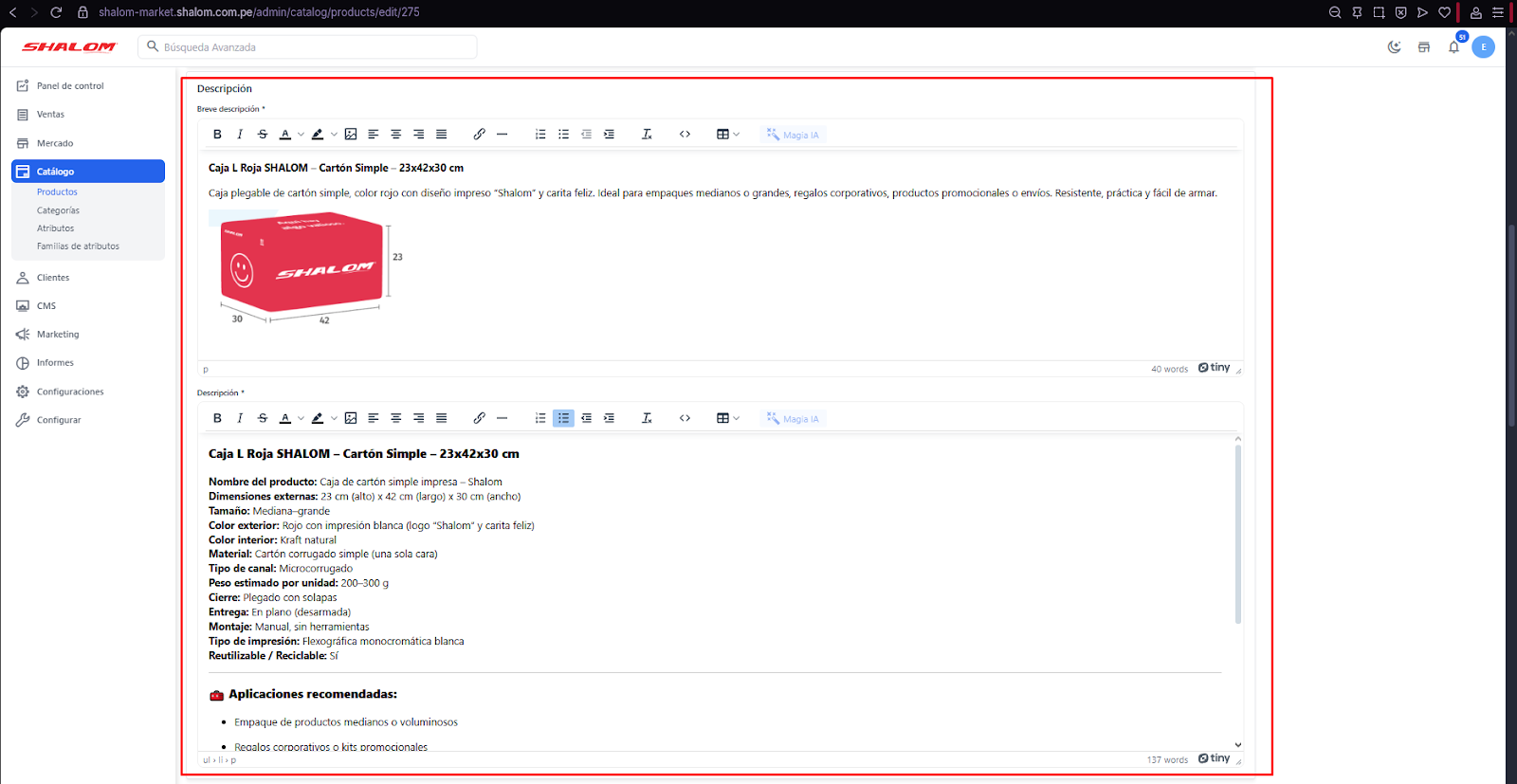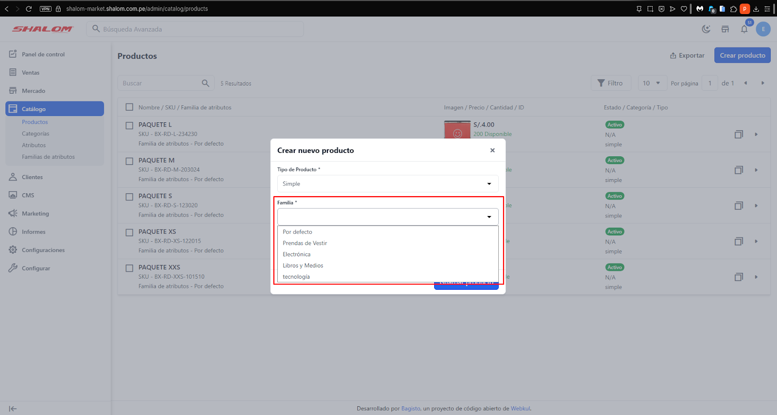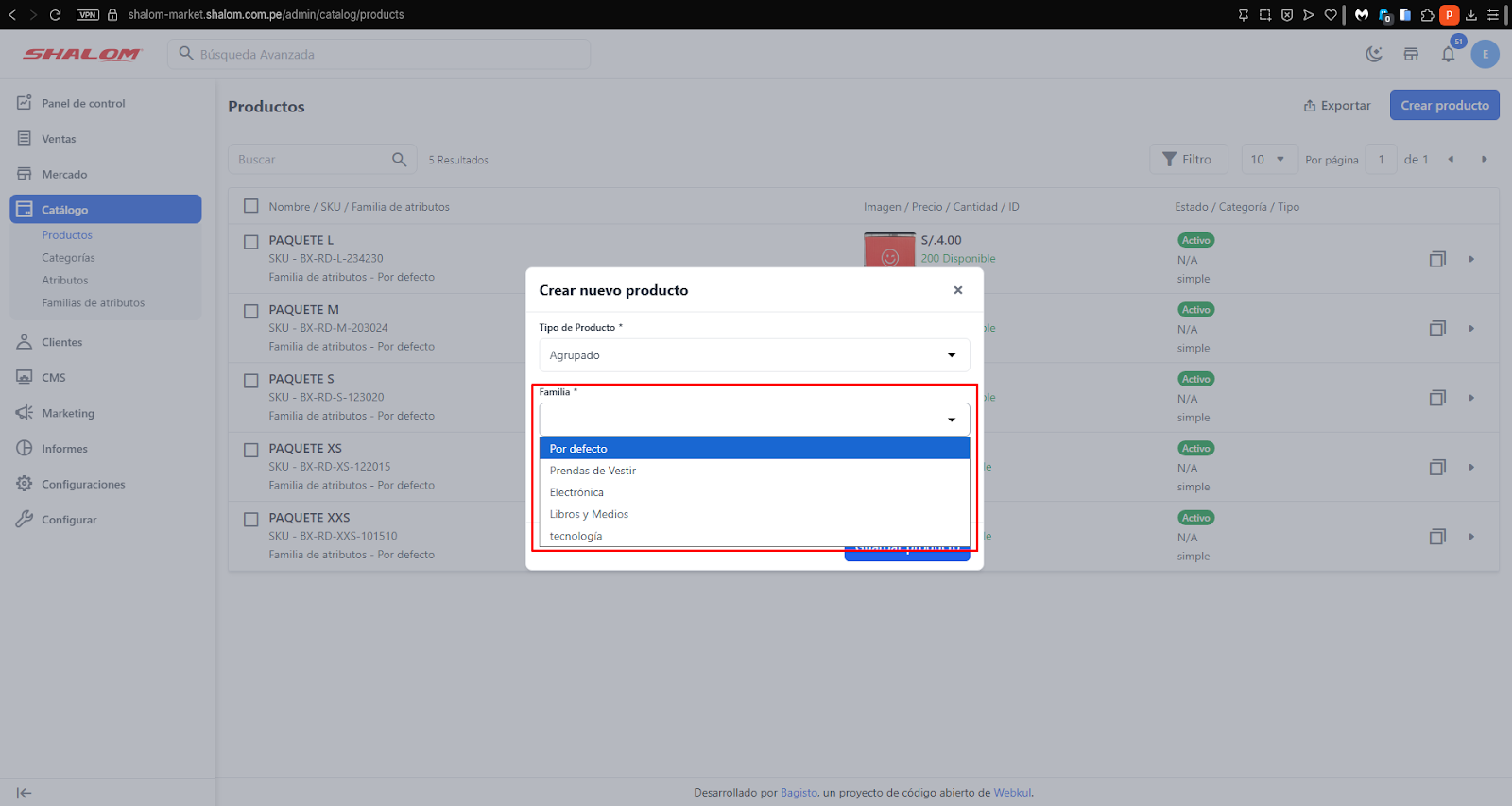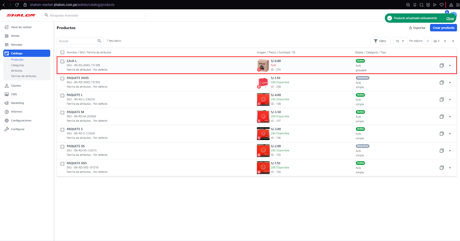 Se ingresa y se presiona en el menú el apartado de “Catálogo - Producto”