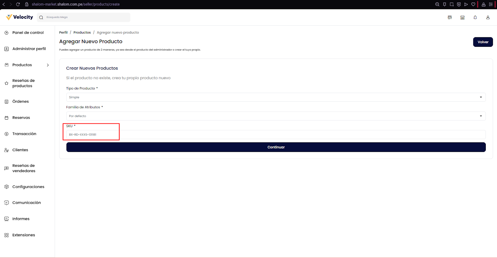 El “SKU” campo obligatorio en el cual se coloca como identificador del producto.
