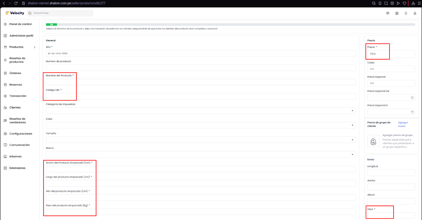 Campos Obligatorios: Para ejecutar correctamente el proceso de funcionamiento de la venta de los productos, es obligatorio cumplir con los siguientes requisitos según la plataforma utilizada: