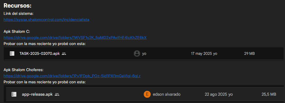 - Enlace/s de apk para pruebas