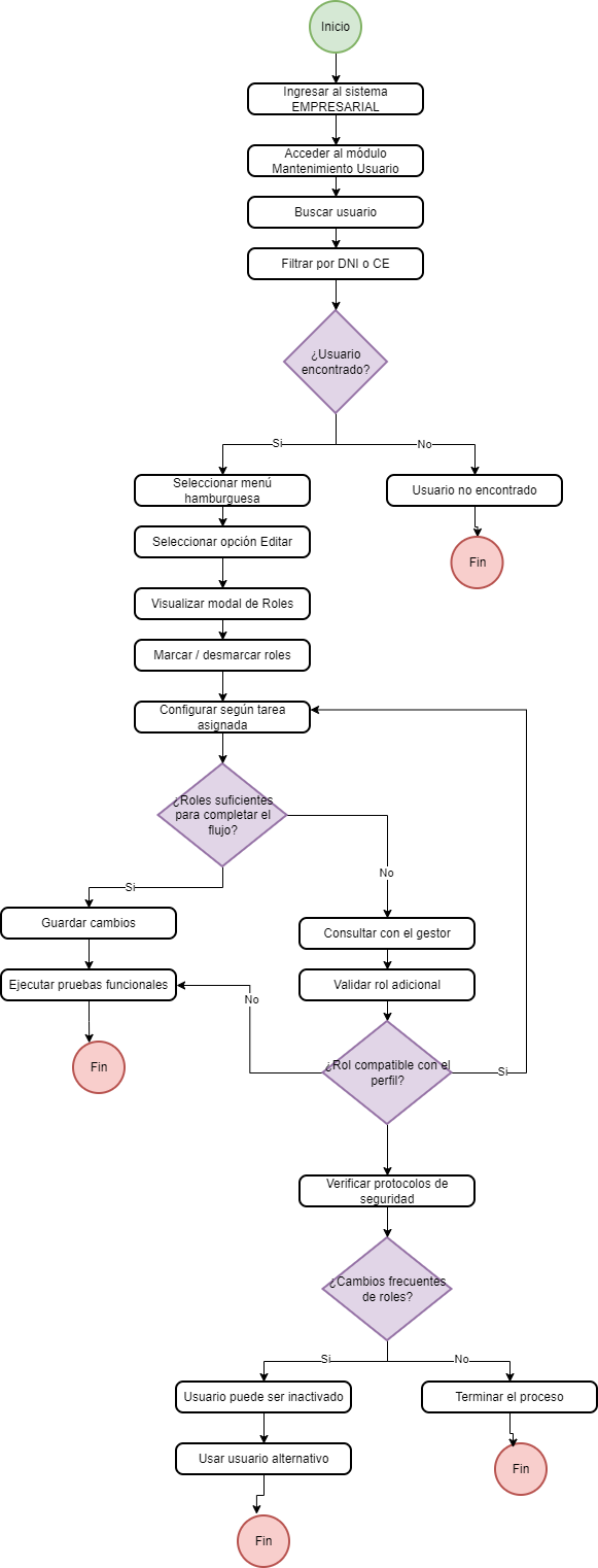 Si durante la ejecución de la tarea se detecta que los roles asignados no son suficientes para completar el flujo funcional, es obligatorio: