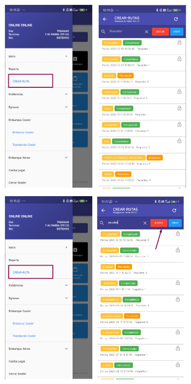 - Evento: Al ingresar a la vista "Crear-Rutas" y por el boton buscar segun lo digitado.