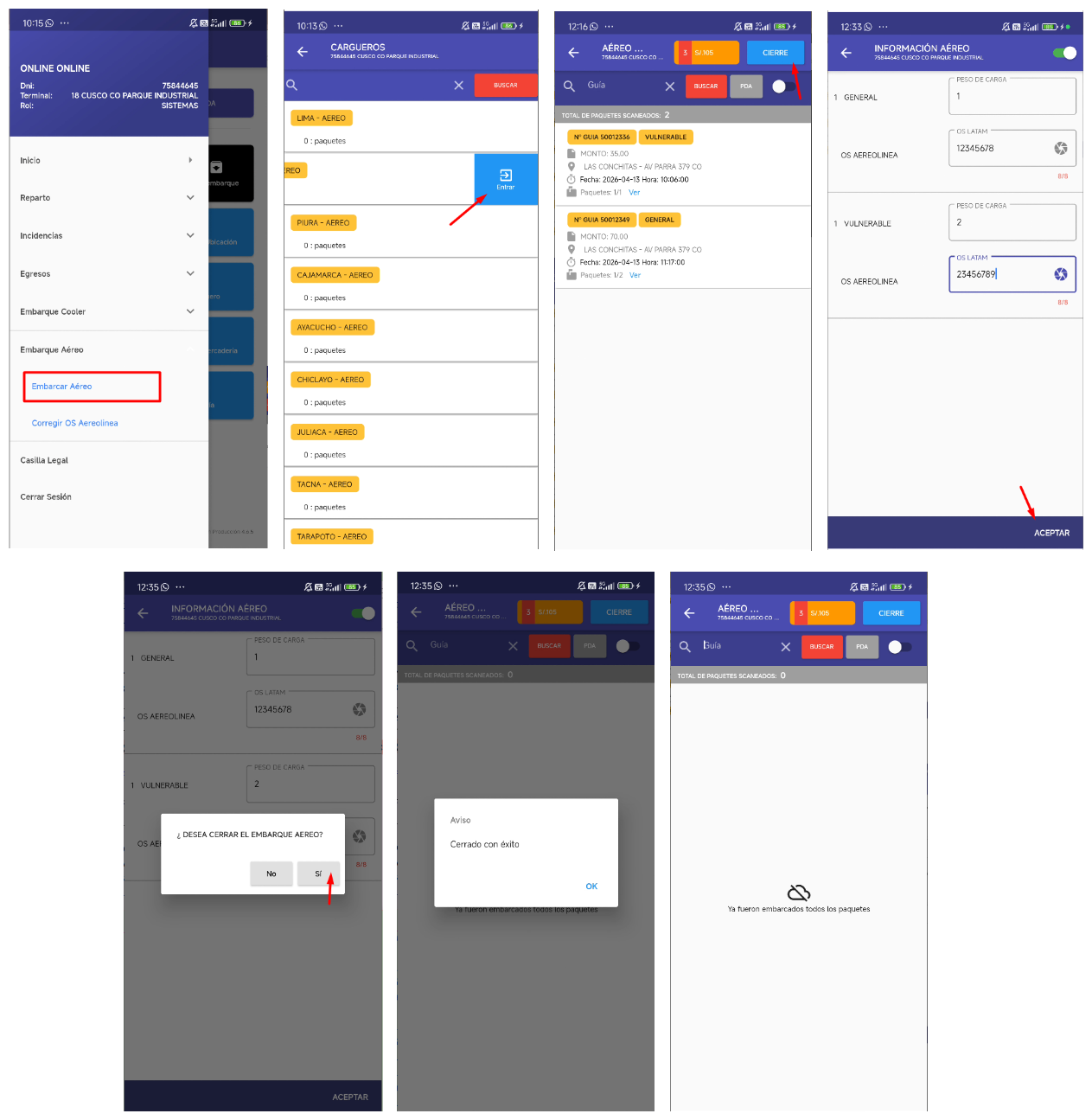 - Módulo Embarque Aereo → Vista Informacion Aerea
