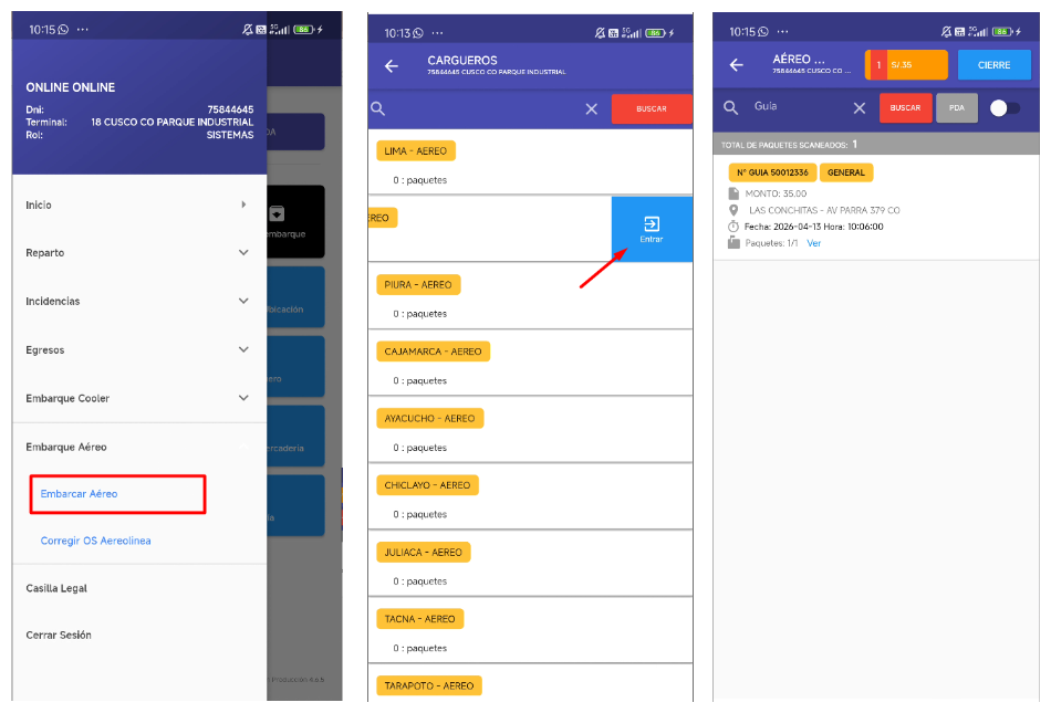 - Módulo Embarque Aereo→ Vista Embarcar Aereo