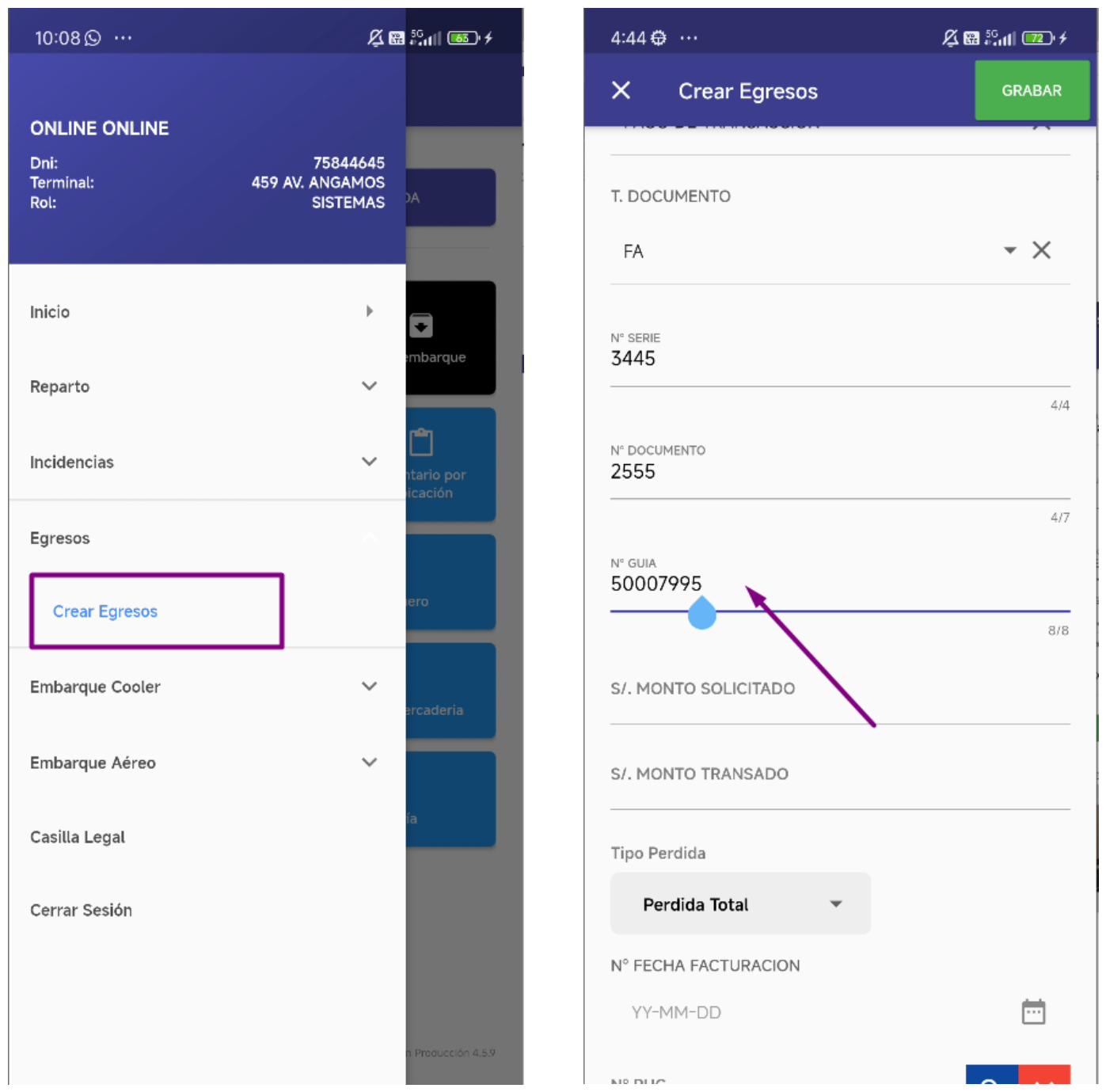 - Evento: Al digitar el nro de guia y presionar check.