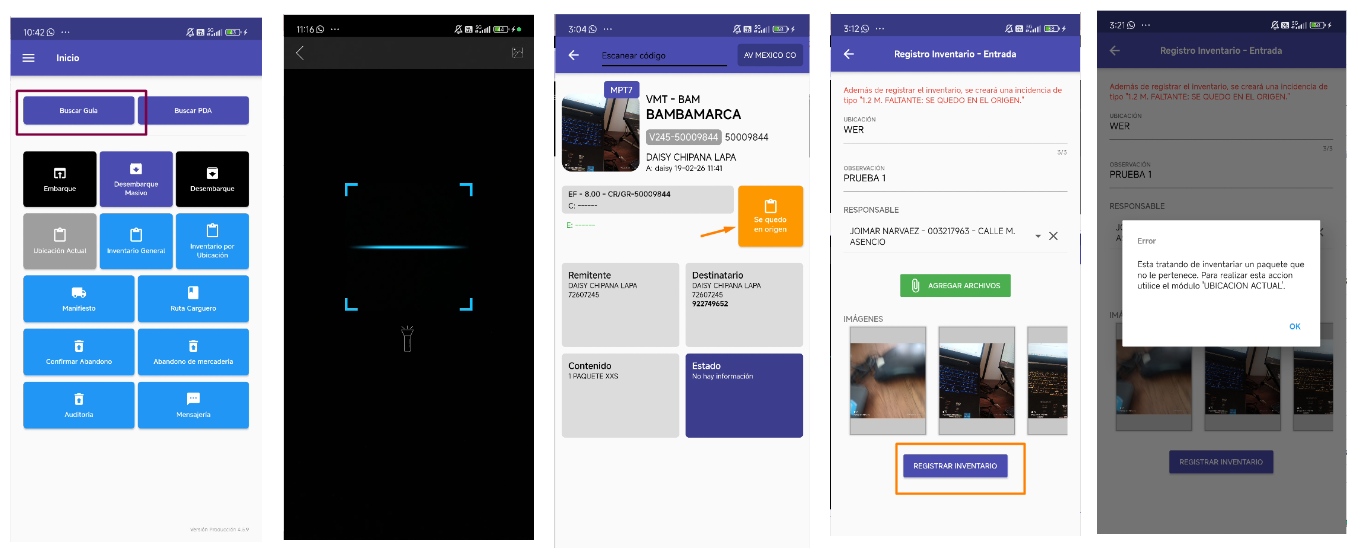 - Módulo Buscar Guia → Vista Inventario