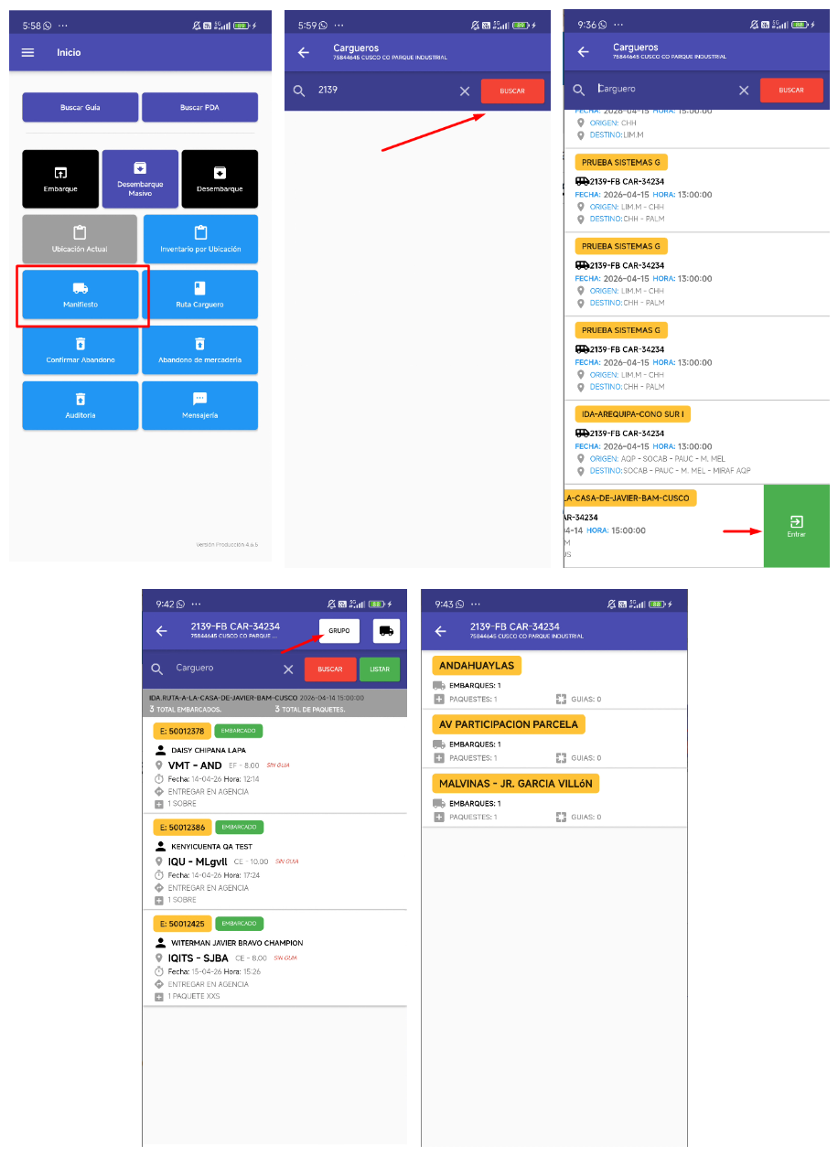 - Módulo Manifiesto → Vista Grupo