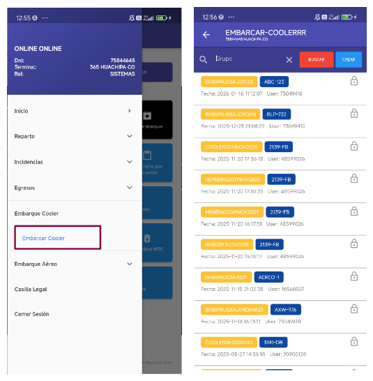 - Módulo Embarque Cooler→ Vista Embarque Cooler