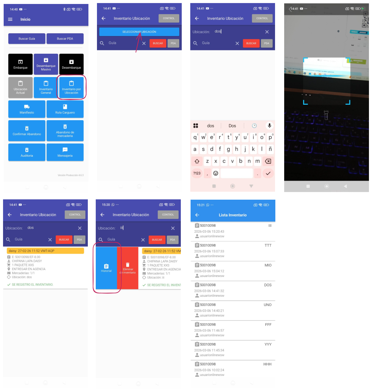 - Uso: Lista todo el inventario ubicacion de la guia.