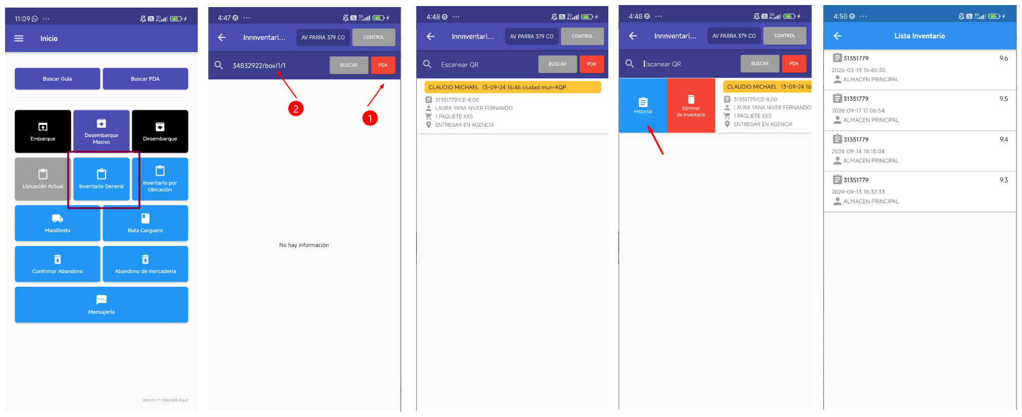 - Módulo Inventario General → Vista Historial