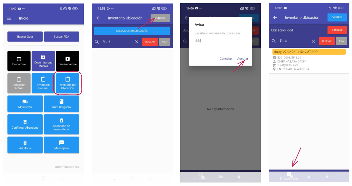 - Evento: Hay 2 formas por el boton "Control" cancelando el dialog, luego escaneando con el qr, y otro digitando el nombre de la ubicacion.